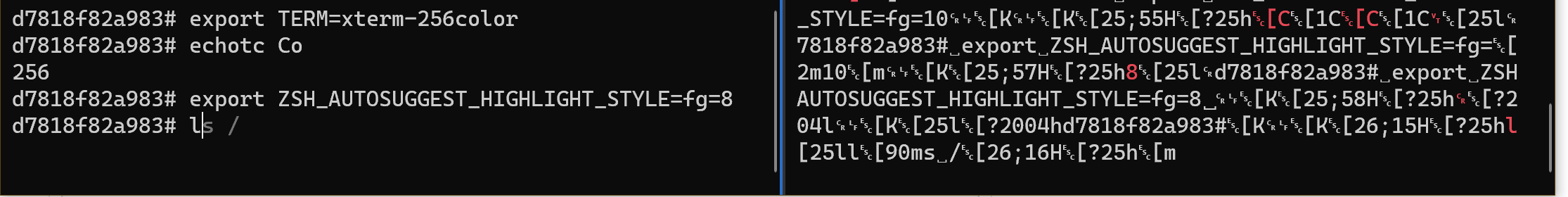 30it's still the same. Whereas if I set theZSH_AUTOSUGGEST_HIGHLIGHT_STYLE=5it will look like this:It could be that styling commands has some limitation? like