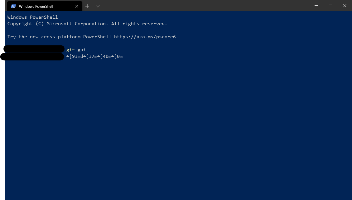 git guiin a PowerShell tabdirExpected behavior