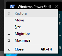 Move and Size look fine, min/max/restore/close are not visible BUT they are functional and the hotkeys work for them.