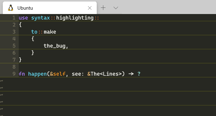 If the font is Cascadia Code, Between every other line, a line of the terminal's background colour bleeds through. Also note that for the Cascadia Code version, there doesn't need to be any syntax highlighting happening. The bug will appear on a blank file.