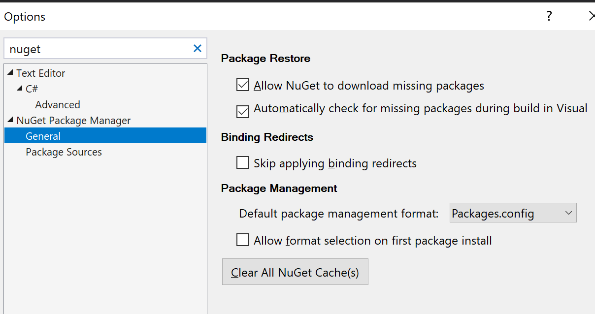 nuget.exefromnuget.organd manually run/path/to/nuget.exe restore(This is what fixed it for me