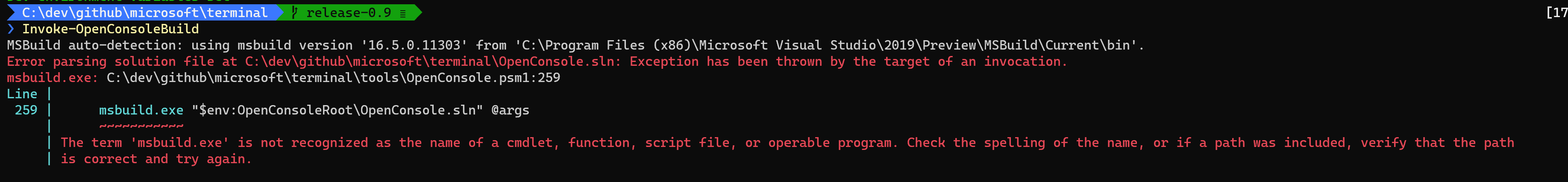 Powershell DevPrompt for vs2019, the build pass but with weird errors messagesThis seems not to be listed at the end of the build :