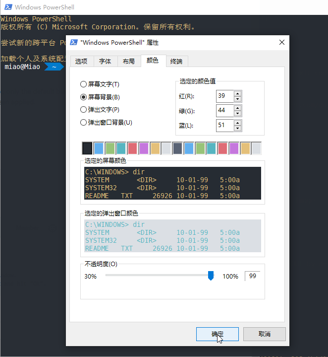 it means Rclick PowerShell windows — attributes — colors — sure(ok)