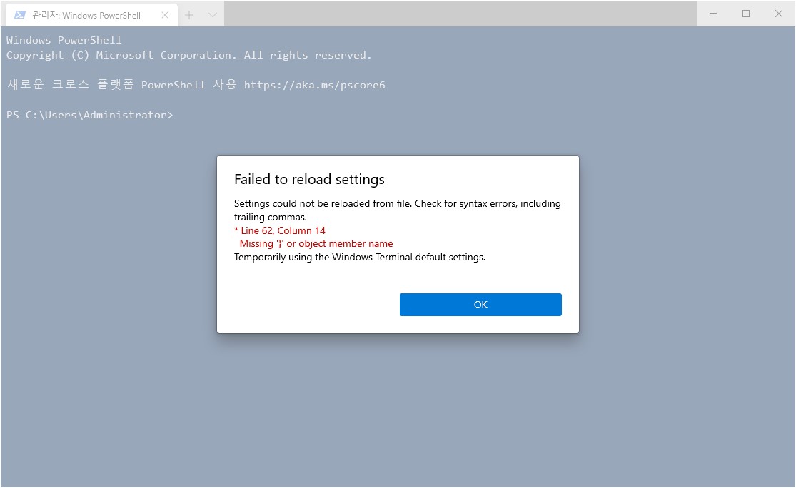 if i run terminal it say error Line 62, Column 14