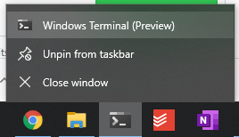 When a user right-clicks on the windows terminal icon in the taskbar, there should be a shortcut to open any of the shells described in the settings file.