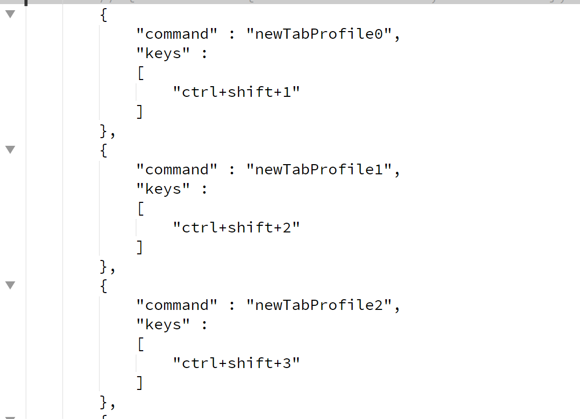 { "command": { "action": "newTab", "index": 1 }, "keys": "ctrl+shift+NUMBER" },