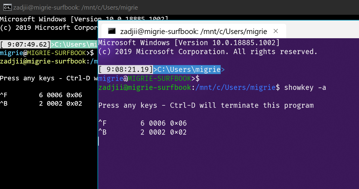 showkeyis a linux util.I don't know too much about Windows vim, so I'll loop in our resident expert, @DHowett-MSFT.