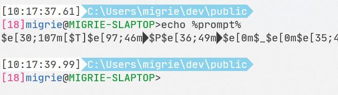 bashlets you customize the prompt with$PS1.cmdconfigures the prompt with thePROMPTenvironment variable.powershellalso lets you configure the prompt (though I'm less familiar with the how there).I personally use something like