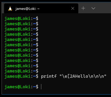 I'd expect to see "Hello" output on the line above the prompt I started from.
