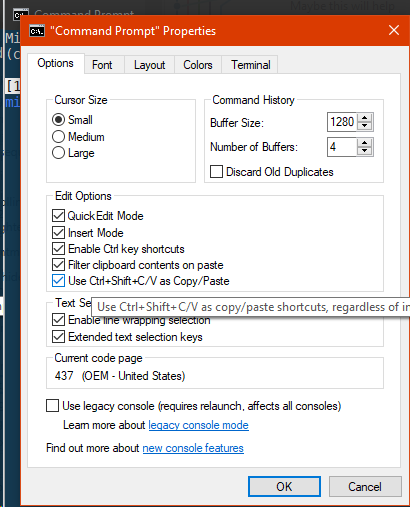 I have tried hotkeys (enabled in Properties/Quick Edit mode), With no result at all