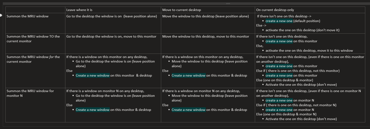 another question, so bring the window on the monitor where the cursor currently is, is that covered? is that handled by MRU?
