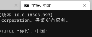 $Host.UI.RawUI.WindowTitle = "你好,中国"works well in powershell.TITLE "你好,中国"works well in cmd BUT it shouldn't include double quote"". It should beTITLE 你好,中国, otherwise there will be""in the title like this.echo -ne "\033]0;你好,中国\a"andPS1=$ PROMPT_COMMAND= echo -ne "\033]0;你好,中国\a"DO NOT work for Chinese. Nothing happened after the command. But it works for English letters.@zadjii-msft commented on GitHub (Aug 4, 2020):